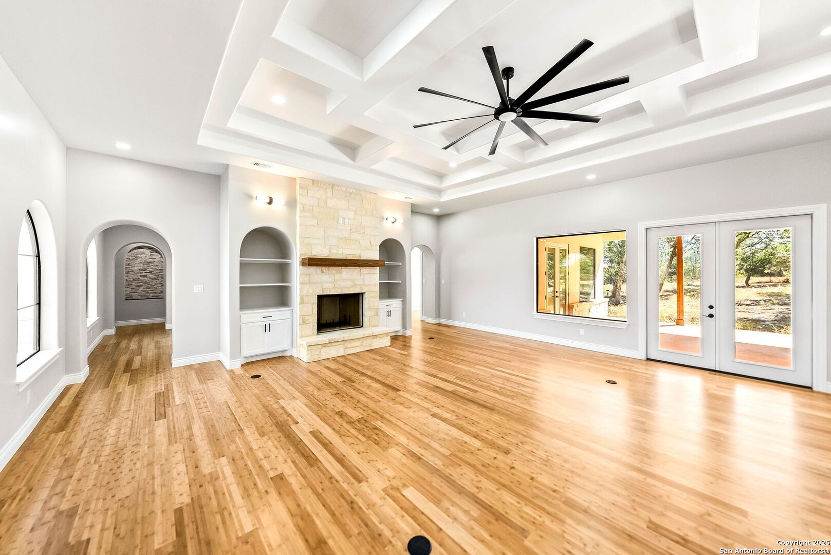 For those who seek an exception life here in the Texas Hill Country, this stunning, newly built 4 Bedroom/3.5 Bath/ 3 Car Garage Custom Home in Vintage oaks awaits you. Nestled back on desirable cul-de-sac offering breathtaking views of the hill country from your front porch and the serene escape of nature among the mature oaks in your backyard. Thoughtfully designed for Easy Luxe Texas Hill Country Living. A true masterpiece. As you step through the inviting front doors, you will be capitavated by the soaring ceilings, open concept living area and wall of windows to backyard that instantly elevate the ambience, bringing the beauty of the outdoors in. The well appointed kitchen is a chef's delight boasting custom cabinetry, endless counters and an inviting island for gathering and showcasing culinary delights, which seamlessly connects to your living and dining area. Immerse yourself in the owner's suite which is a haven for luxury. A guest ensuite with full bath and french doors opening to private patio retreat. And two spacious bedrooms share a luxe jack-n-jill bathroom ensemble. The oversized 3 car garage and additional pad parking, along with your Texas sized patio, featuring the perfect Stone fireplace to cozy up to in our fall evenings complete this home. And enjoy all the award winning resort style amenities of Vineyard Community clubhouse with lazy river, 3 pools, a park, state-of-art-fitness center, and miles of nature walking, hiking, and biking trails, along with Vintage Oaks music and craft events that encompass the Vintage Oaks Lifestyle while being minutes from HEB, medical, shopping, schools, lakes, Historic Gruene, the rivers and easy commute to San Antonio, Austin, New Braunfels, and the Interntationl Airport and all the wonderful upcoming fall & holiday festivities at Vintage Oaks and throughout the Texas Hill Country and San Antonio.