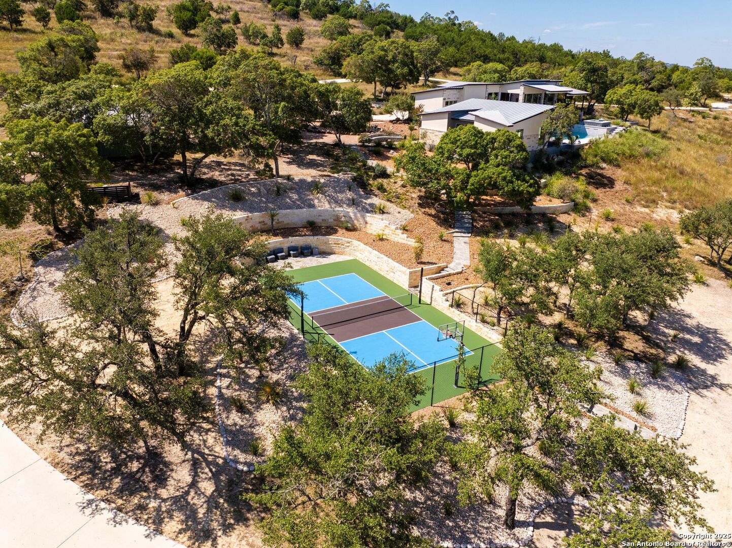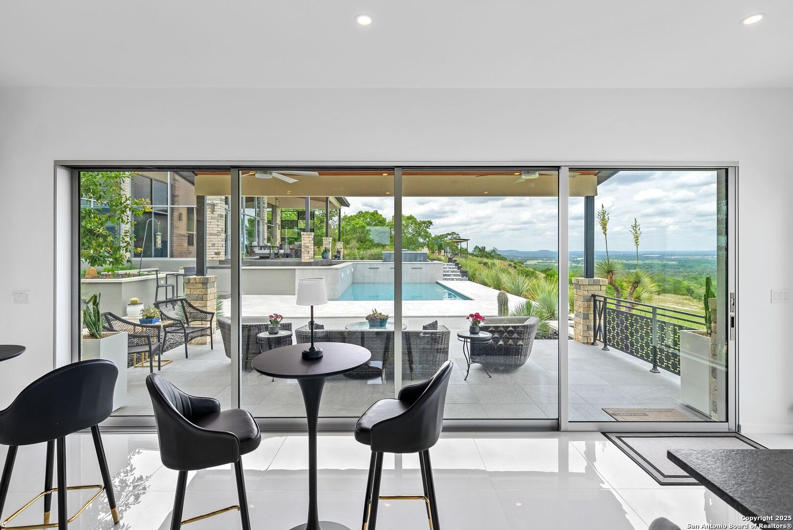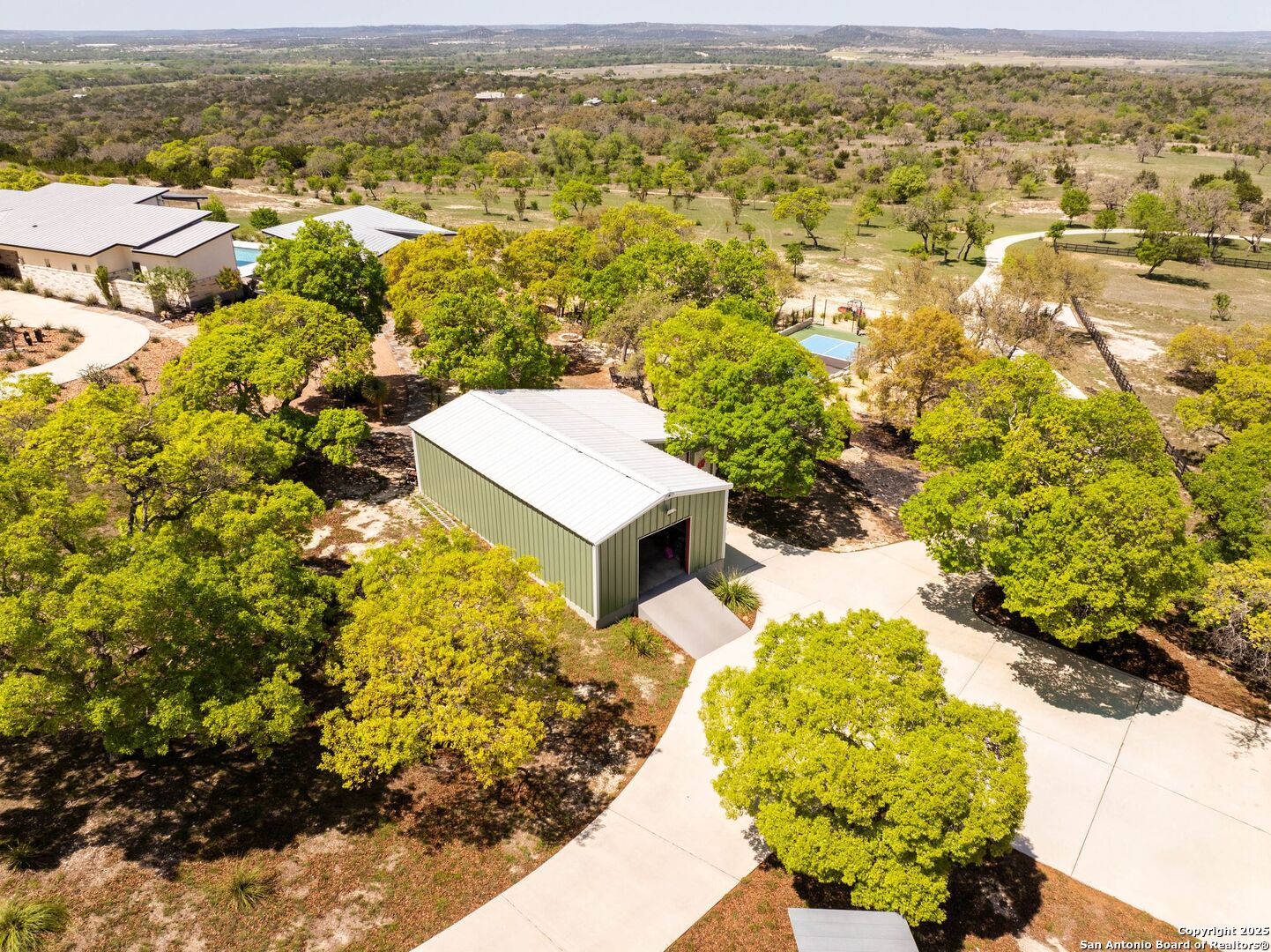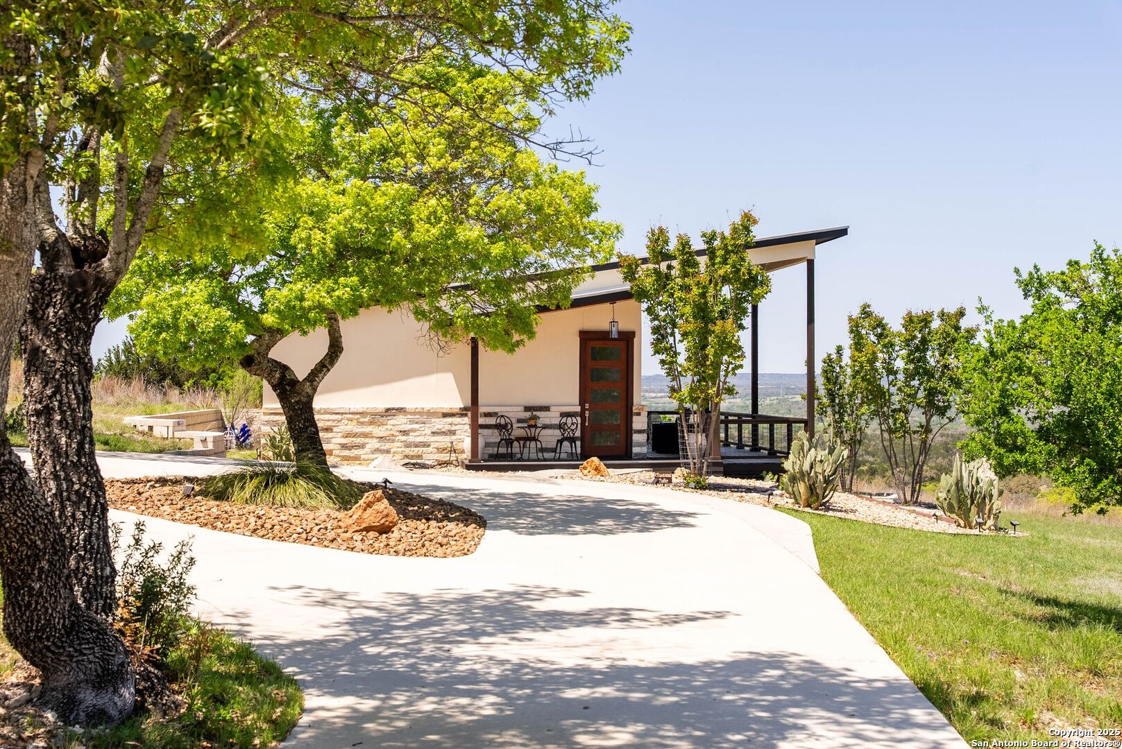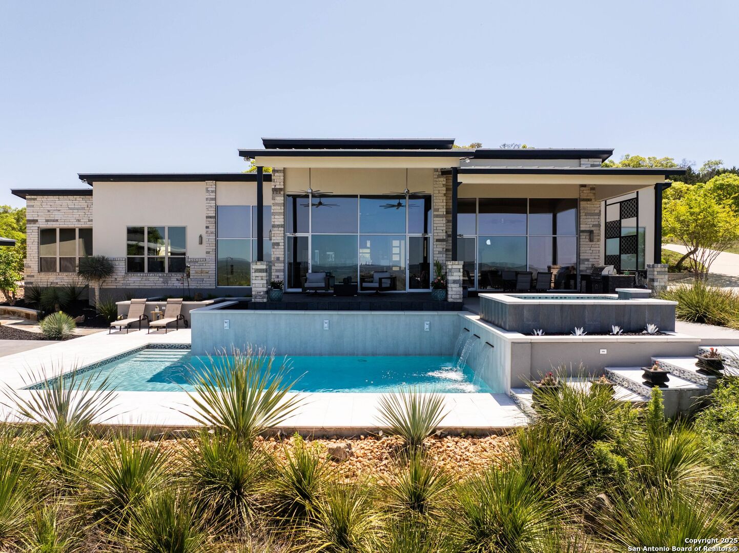 Experience unparalleled luxury in the heart of the Texas Hill Country with this exceptional modern ranchette estate, a true sanctuary that seamlessly blends nature's grandeur with refined elegance. Spanning over 12 private acres, this one-of-a-kind residence is perfectly situated just outside San Antonio in the charming town of Comfort, Texas. Nestled on the tranquil hillside at the rear of a gated estate, it offers unparalleled seclusion while still providing convenient access to city amenities and the San Antonio International Airport, making it ideal for both relaxation and effortless travel. Step inside to discover an expansive sanctuary where floor-to-ceiling windows frame breathtaking panoramic views of rolling hills and endless natural beauty, inviting the outdoors in. The thoughtfully curated interior merges natural stone accents with sophisticated textures, cultivating a warm yet modern ambiance throughout. Architectural mastery is evident in sleek, seamless lines that harmonize with the landscape, creating a perfect synergy between indoor and outdoor living. Floor plans designed for effortless entertaining boast spacious areas that open onto the sprawling outdoor terraces, where you can unwind by your luxurious pool or gather at the stylish Car Bar cabana-a vibrant setting for hosting friends and family. Imagine waking each day immersed in awe-inspiring vistas, with the rising sun casting a golden glow over your private paradise. From dawn to dusk, each moment offers a new perspective-an evolving masterpiece of natural beauty and refined comfort. For your guests, a private guesthouse provides an equally indulgent experience, ensuring everyone enjoys their stay in comfort and style. This estate is more than just a home-it's a lifestyle of exclusive luxury, serenity, and effortless elegance. Discover your new sanctuary in Comfort, where exceptional living begins and every moment is touched by beauty. Welcome to your Hill Country retreat-where nature and luxury unite in perfect harmony.