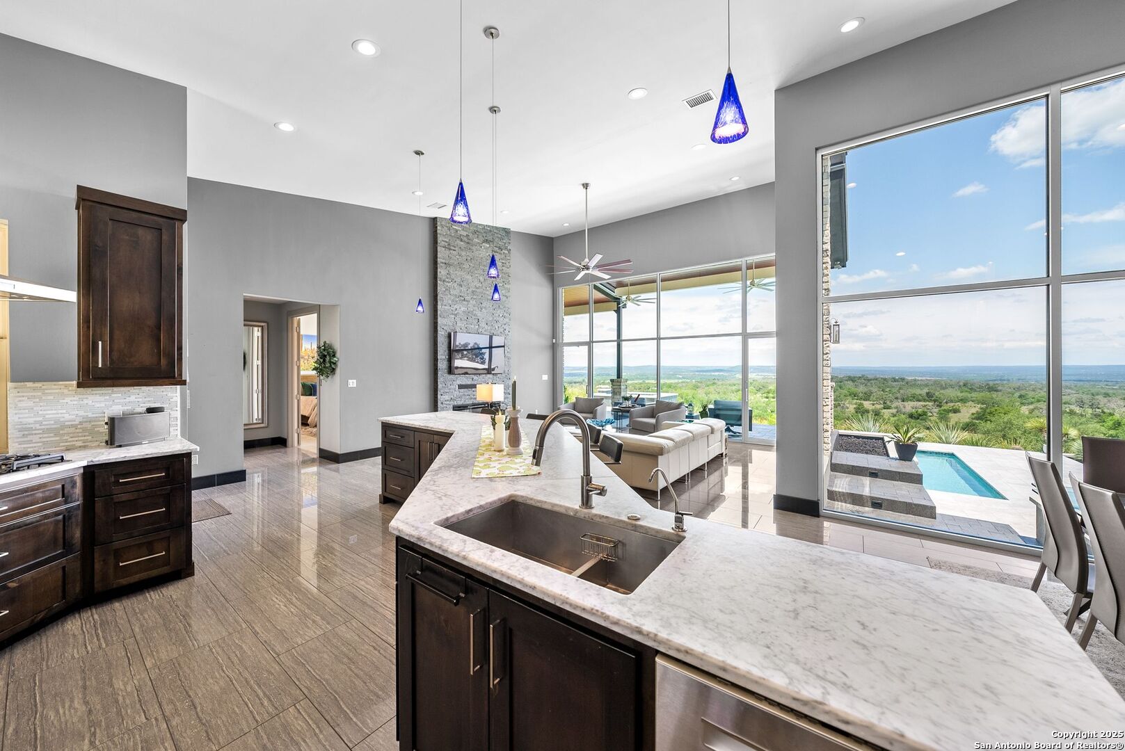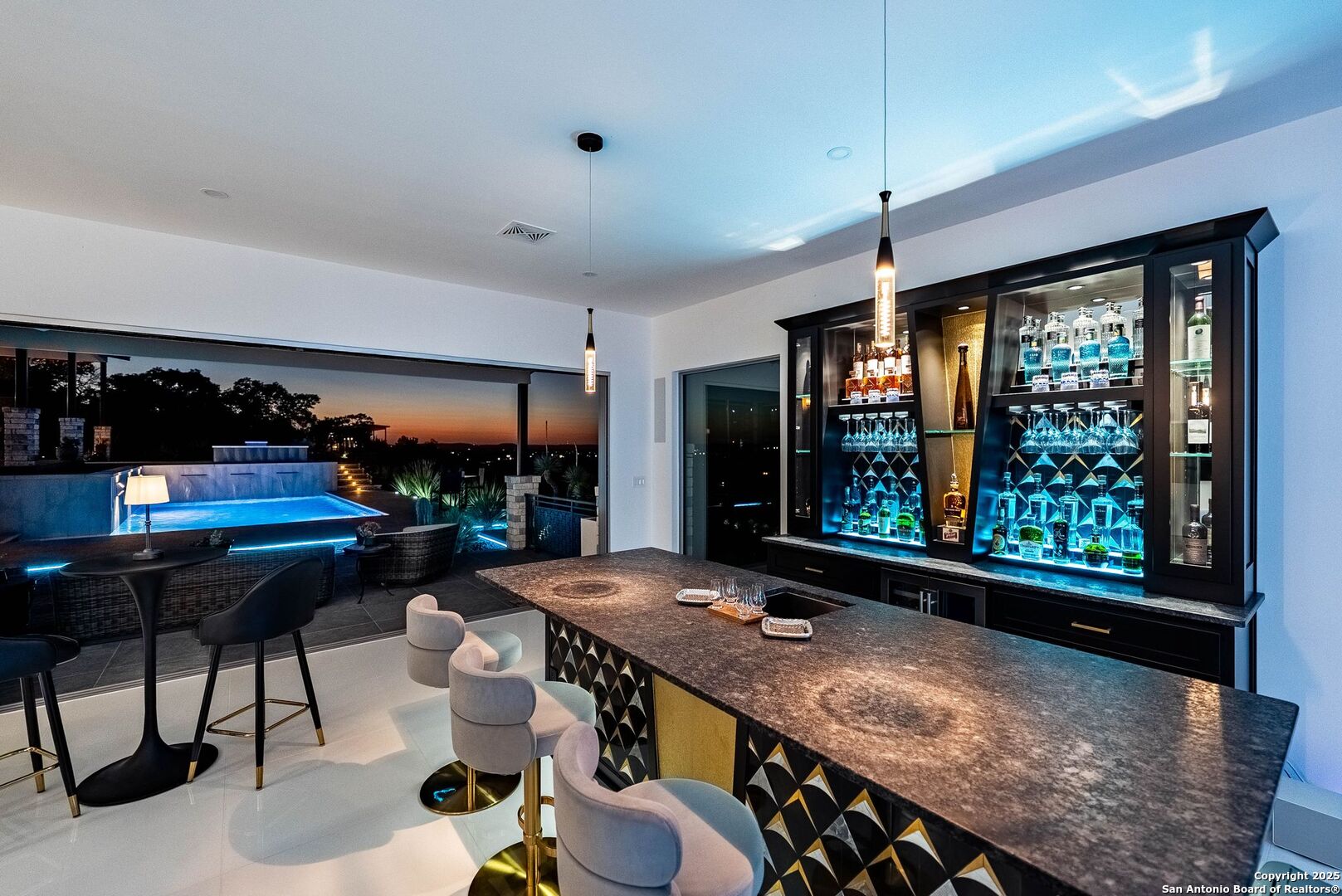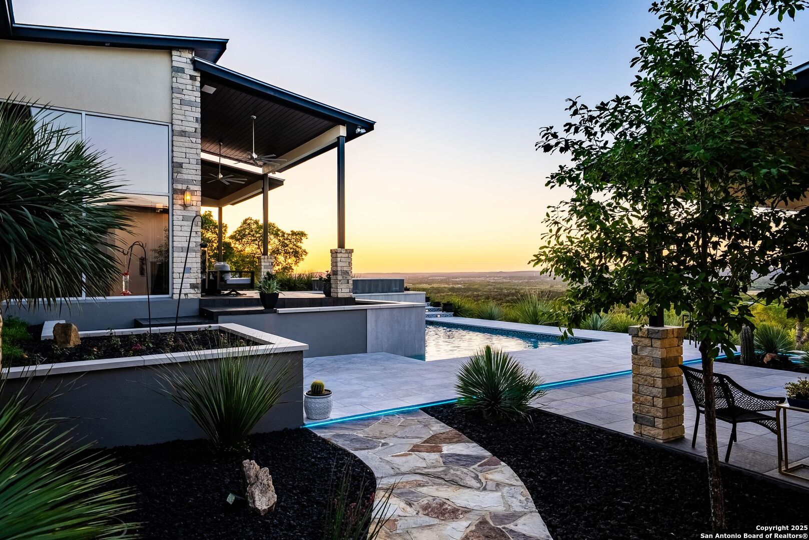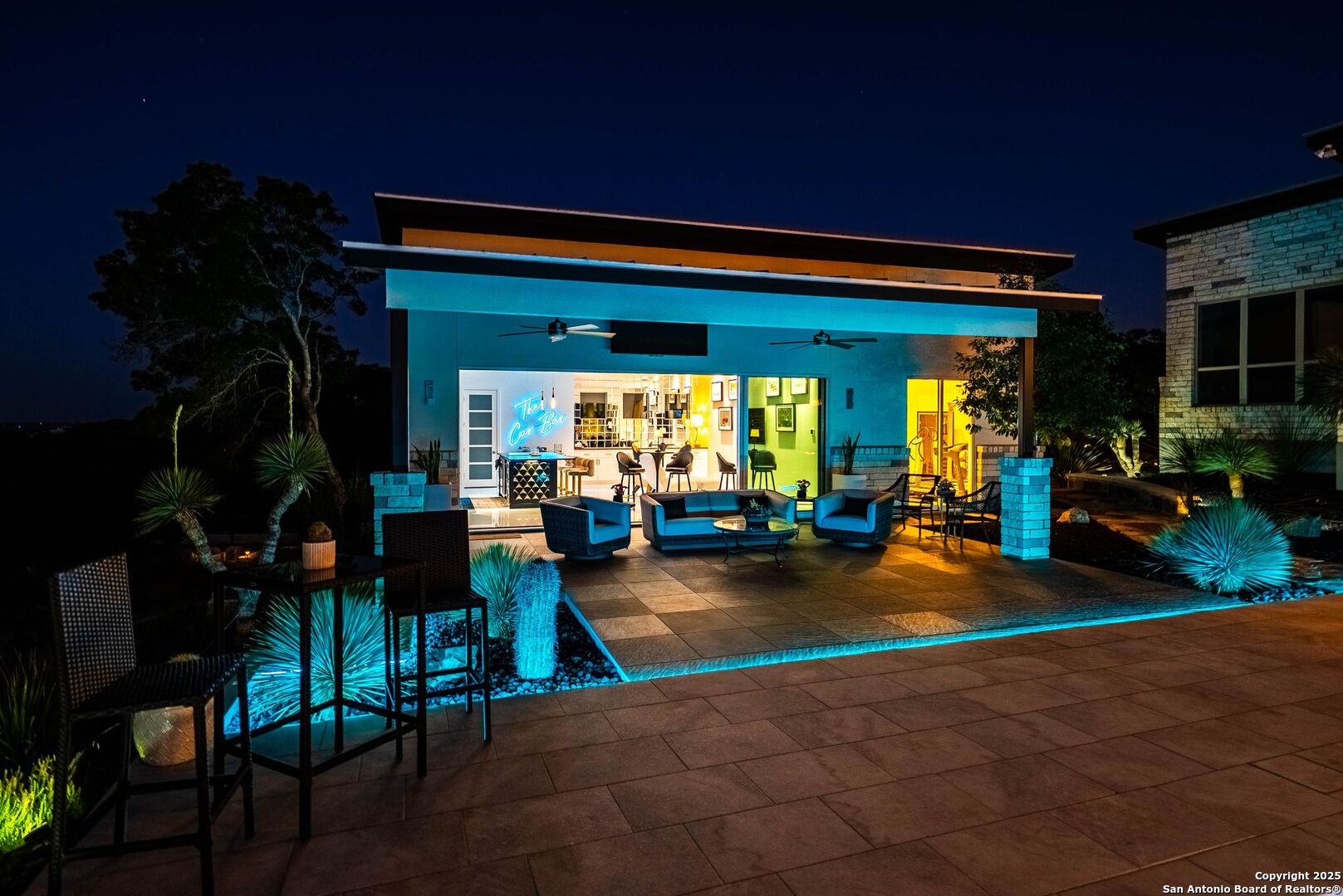 Experience unparalleled luxury in the heart of the Texas Hill Country with this exceptional modern ranchette estate, a true sanctuary that seamlessly blends nature's grandeur with refined elegance. Spanning over 12 private acres, this one-of-a-kind residence is perfectly situated just outside San Antonio in the charming town of Comfort, Texas. Nestled on the tranquil hillside at the rear of a gated estate, it offers unparalleled seclusion while still providing convenient access to city amenities and the San Antonio International Airport, making it ideal for both relaxation and effortless travel. Step inside to discover an expansive sanctuary where floor-to-ceiling windows frame breathtaking panoramic views of rolling hills and endless natural beauty, inviting the outdoors in. The thoughtfully curated interior merges natural stone accents with sophisticated textures, cultivating a warm yet modern ambiance throughout. Architectural mastery is evident in sleek, seamless lines that harmonize with the landscape, creating a perfect synergy between indoor and outdoor living. Floor plans designed for effortless entertaining boast spacious areas that open onto the sprawling outdoor terraces, where you can unwind by your luxurious pool or gather at the stylish Car Bar cabana-a vibrant setting for hosting friends and family. Imagine waking each day immersed in awe-inspiring vistas, with the rising sun casting a golden glow over your private paradise. From dawn to dusk, each moment offers a new perspective-an evolving masterpiece of natural beauty and refined comfort. For your guests, a private guesthouse provides an equally indulgent experience, ensuring everyone enjoys their stay in comfort and style. This estate is more than just a home-it's a lifestyle of exclusive luxury, serenity, and effortless elegance. Discover your new sanctuary in Comfort, where exceptional living begins and every moment is touched by beauty. Welcome to your Hill Country retreat-where nature and luxury unite in perfect harmony.